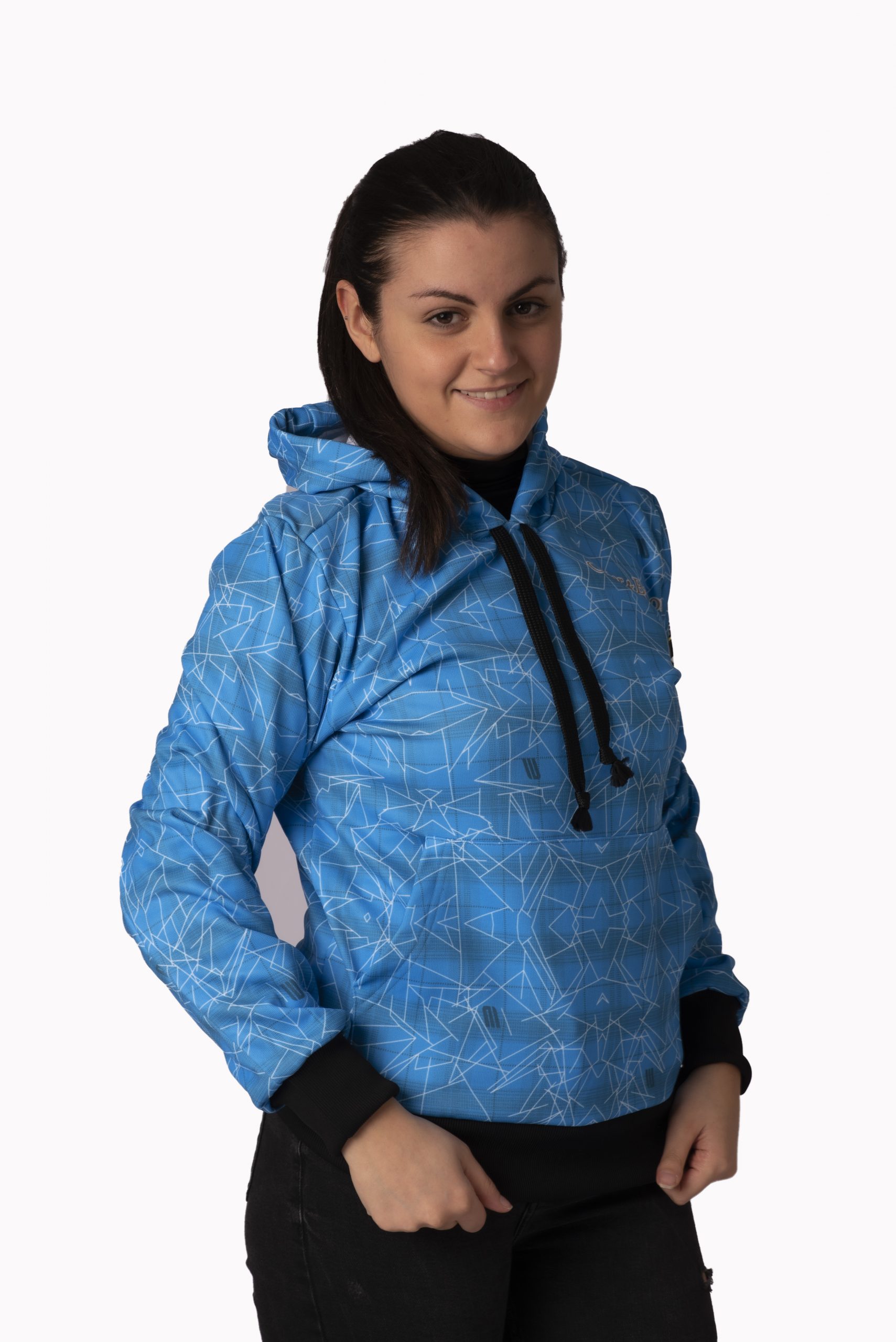 Felpa tecnica con zip e cappuccio o senza zip, stampata in sublimazione con tessuto COVER monoelastico. Polsi e fondo in costina elasticizzata. Modello con manica a giro. Presenta due tasche davanti a toppa, zip davanti per apertura totale, cappuccio regolabile con cordino.