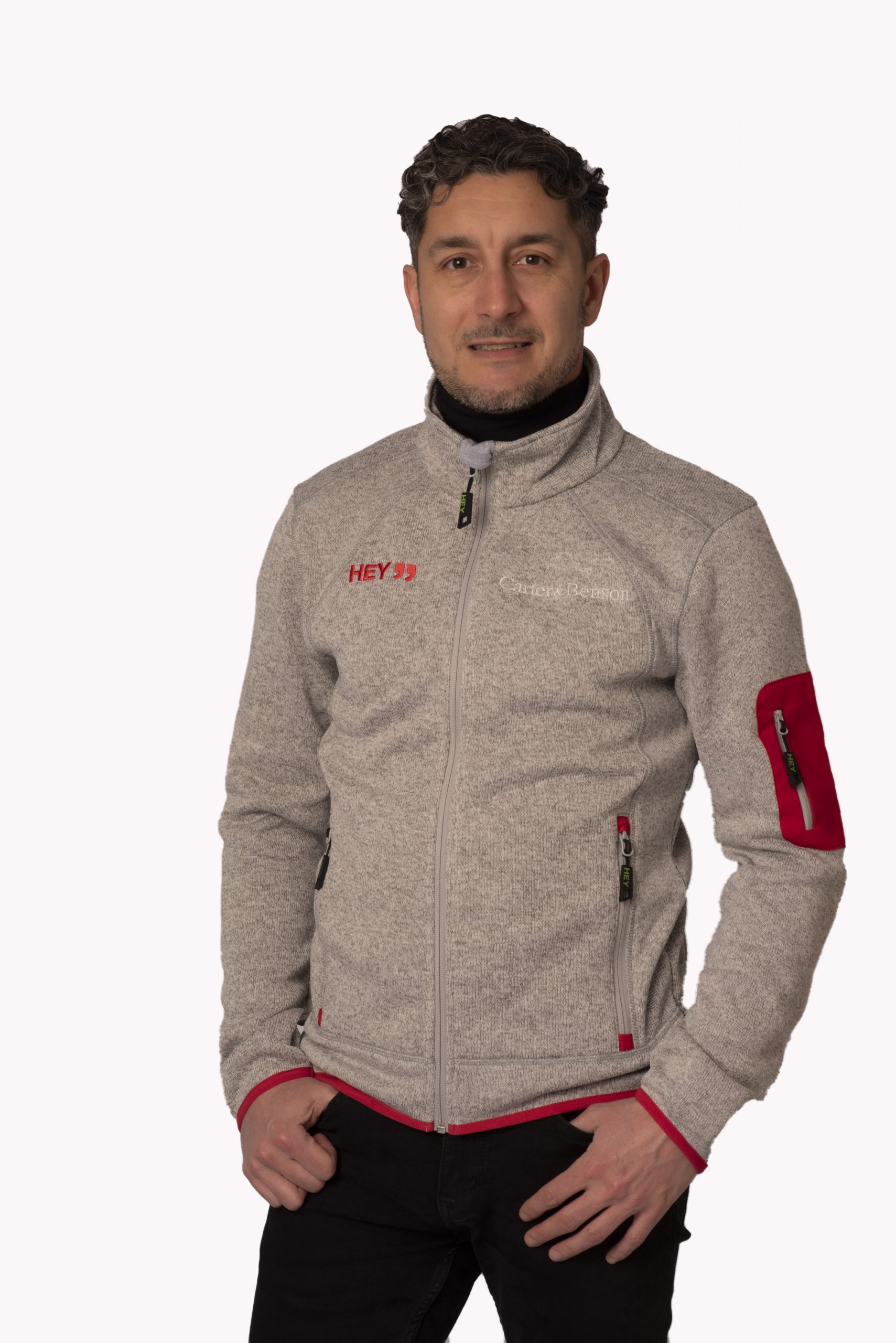 Pile tecnico full zip per donna/uomo, con doppia tasca con zip. Modello uomo con una zip aggiutniva sulla manica. Esterno in lana e interno in pile. Vedi anche 005-04 e 005-05